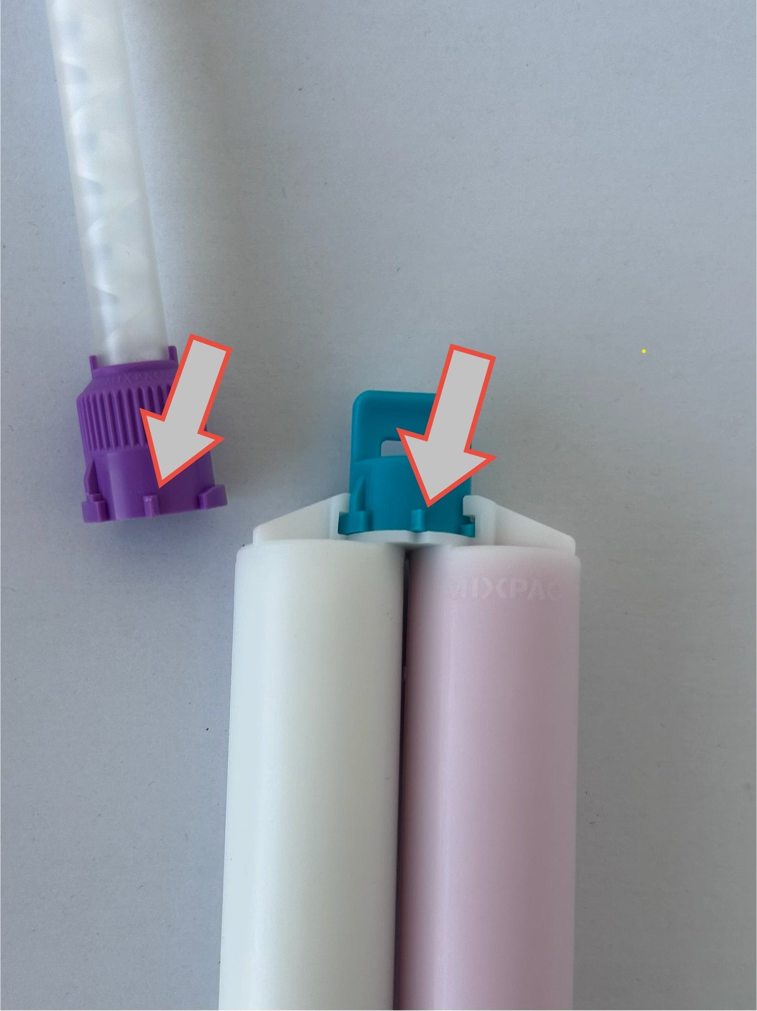 Simply insert the cartridge into the gun, attach the mixing nozzle, (or don't) and squeeze the desired amount onto the surface you are replicating. Then mix and cure, or put your denim patch in before it cures. Shelf life is much longer, just remember to keep the little cap and align the notch with the mark before you twist and lock so you can keep it on the shelf.