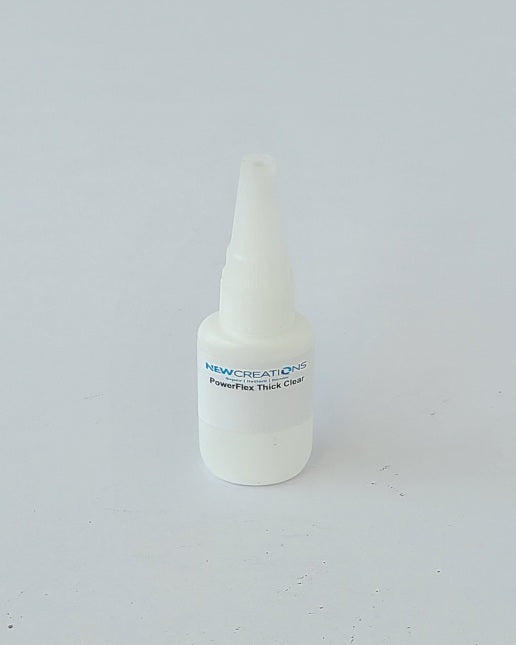 Power Flex Thick is a flexible cyanoacrylate adhesive, second only to Power Flex Original. It is thick and sometimes easier to work with because of it's viscoscity. It can be used to repair leather, vinyl, fabric, linoleum, plastics, etc. This is also good on vinyl planking. Great for surface repairs and texturing vinyl siding. Can be activated with Accelerator Liquid or Accelerator Aerosol and used as a slight filler, but it also can be used without Accelerator to glue torn leather, minor glass cuts and cat scratches. Power Flex Thick Clear is sandable when activated with Accelerator.